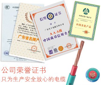 公司先后獲得CCC認(rèn)證,廣東省名牌,中國(guó)名優(yōu)產(chǎn)品,中國(guó)質(zhì)量信用企業(yè),環(huán)境標(biāo)志產(chǎn)品認(rèn)證證書,計(jì)量體系認(rèn)證,全國(guó)守合同重信用單位,質(zhì)量管理體系認(rèn)證,高新技術(shù)企業(yè),質(zhì)量過(guò)硬放心品牌,全國(guó)消費(fèi)者信得過(guò)產(chǎn)品,阻燃制品標(biāo)識(shí)使用證書,中國(guó)綠色環(huán)保產(chǎn)品等證書,廣東慶豐電纜為您的安全保駕護(hù)航.